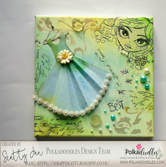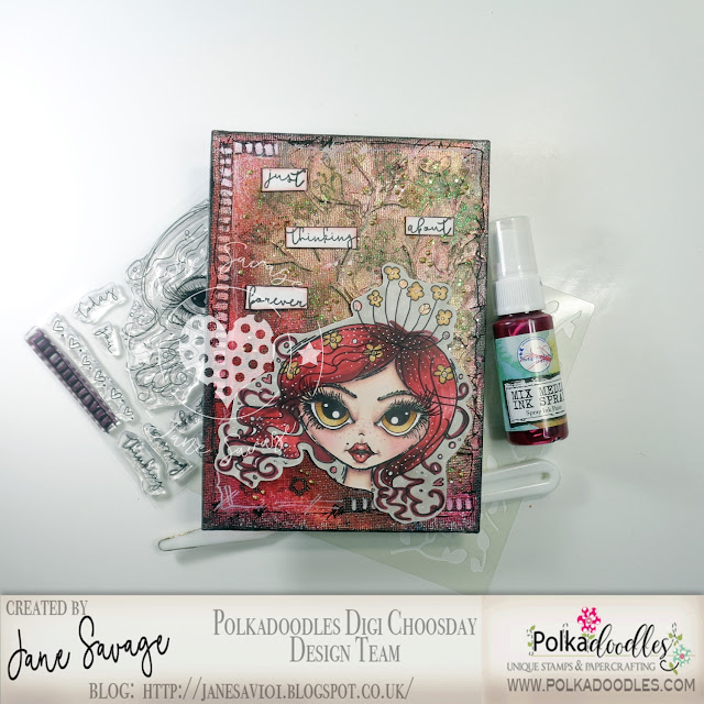 Jane - I have used some of the stunning new Polkadoodles stamps and stencils to decorate a canvas panel. Lots of paints sprays and texture paste too.