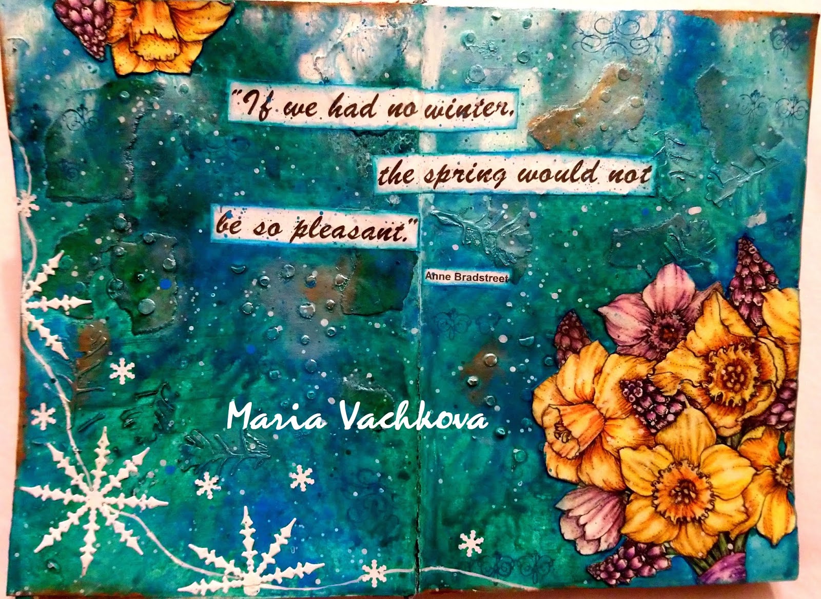 Jan For my project this week I decided to make a little start on my journal, I have used paints and distress inks and lots of goodies from Polkadoodles