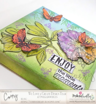 Corry This time I've made a little canvas for you. For the background I used distress inks and different stamps....