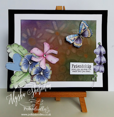 Pans are perfect for making a quick scenic card, they really make light work of this kind of card! I've used some old favourite stamps and added some of the gorgeous new Tropical Stamps from Polkadoodles to create this card, using my Pans for some summer colour.